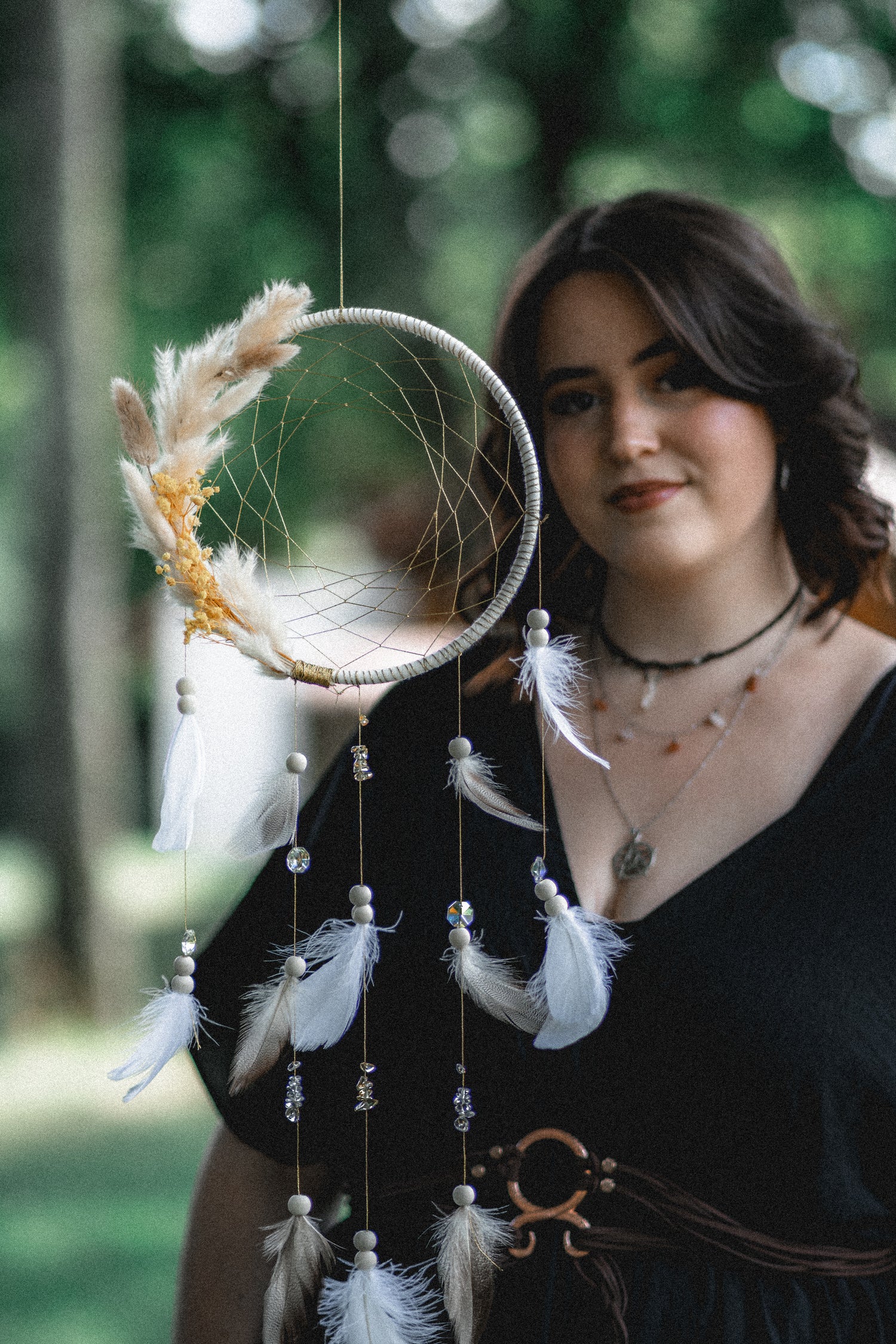 Mein Stil ist dabei eine Mischung aus schlicht, natürlich und verspielt – ein bisschen Hexengarten, ein bisschen Elfenwald, ein bisschen Alchemistenatelier. Ich liebe gedeckte Erdtöne, das Funkeln von Amethysten, die Zartheit von getrockneten Blüten und die kraftvolle Stille, die entsteht, wenn man bei sich selbst ankommt.