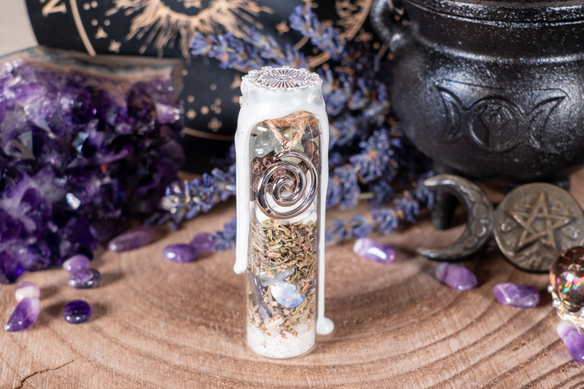 Das Spelljar trägt die Energie des Elements Luft – klar, beweglich, leicht. Es unterstützt dich dabei, deinen Geist zu öffnen, neue Gedanken fließen zu lassen und Raum für Inspiration zu schaffen. Luft ist das Element der Ideen, der Kommunikation und der feinen Wahrnehmung.