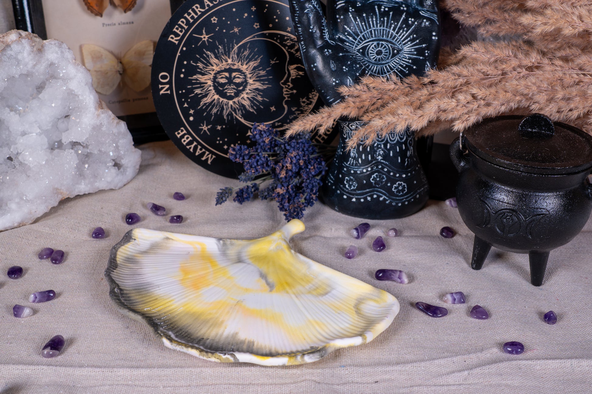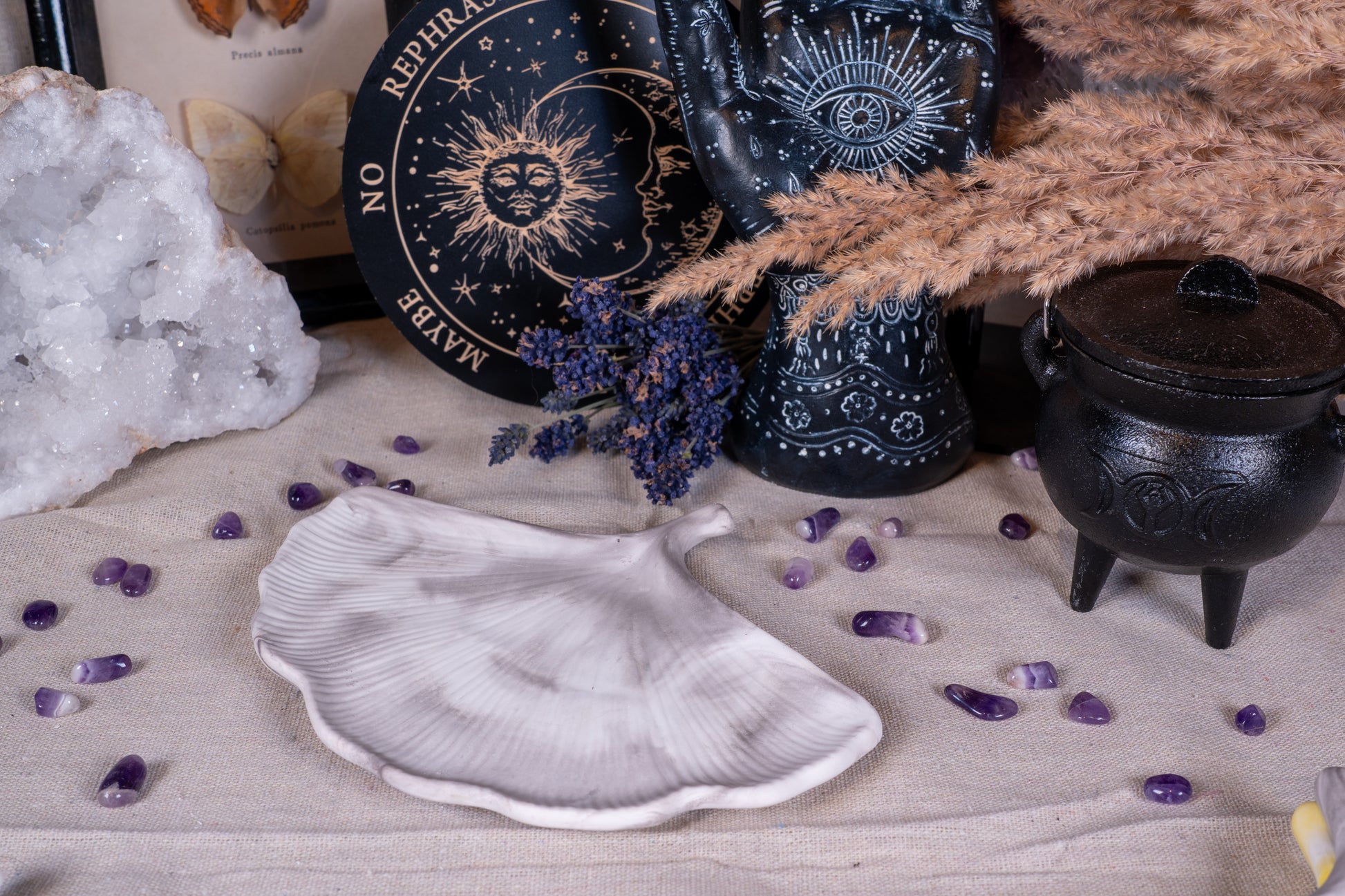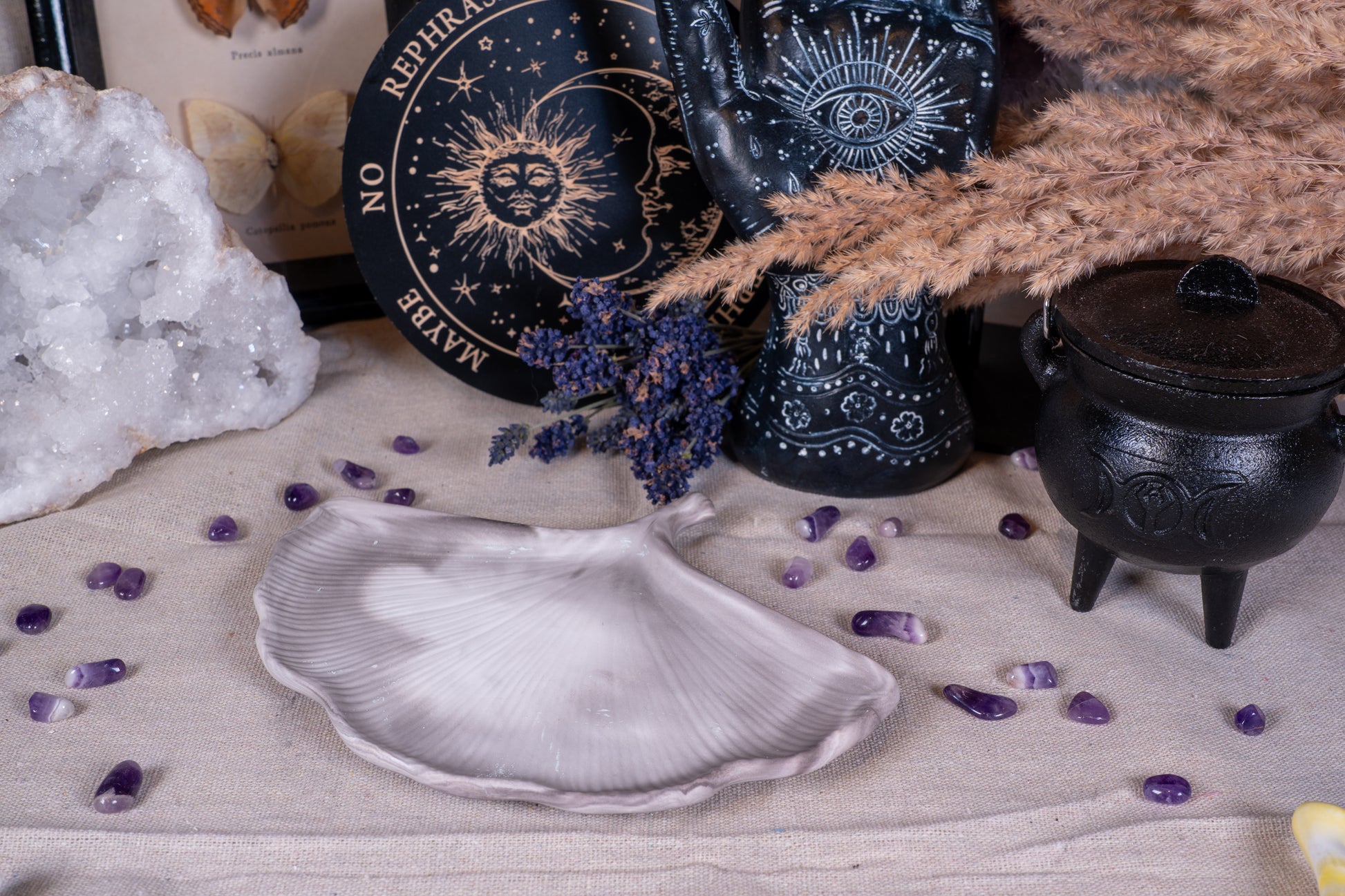 Ob für Kristalle, getrocknete Kräuter, kleine Schmuckstücke oder rituelle Opfergaben – Danu bietet einen würdevollen und ästhetischen Platz für alles, was dir am Herzen liegt.