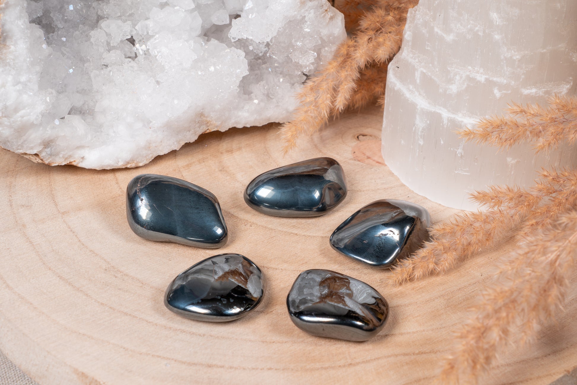 Der Hämatit gilt als einer der kraftvollsten Erdungssteine überhaupt. Mit seiner metallischen Schwere hilft er dir, dich mit deinem Wurzelchakra zu verbinden und geistige Klarheit zu finden – besonders in Momenten innerer Unruhe oder Überforderung. Er stärkt deine Standhaftigkeit, schützt vor energetischen Angriffen und bringt dich zurück in deine Mitte, wenn du dich verloren fühlst.