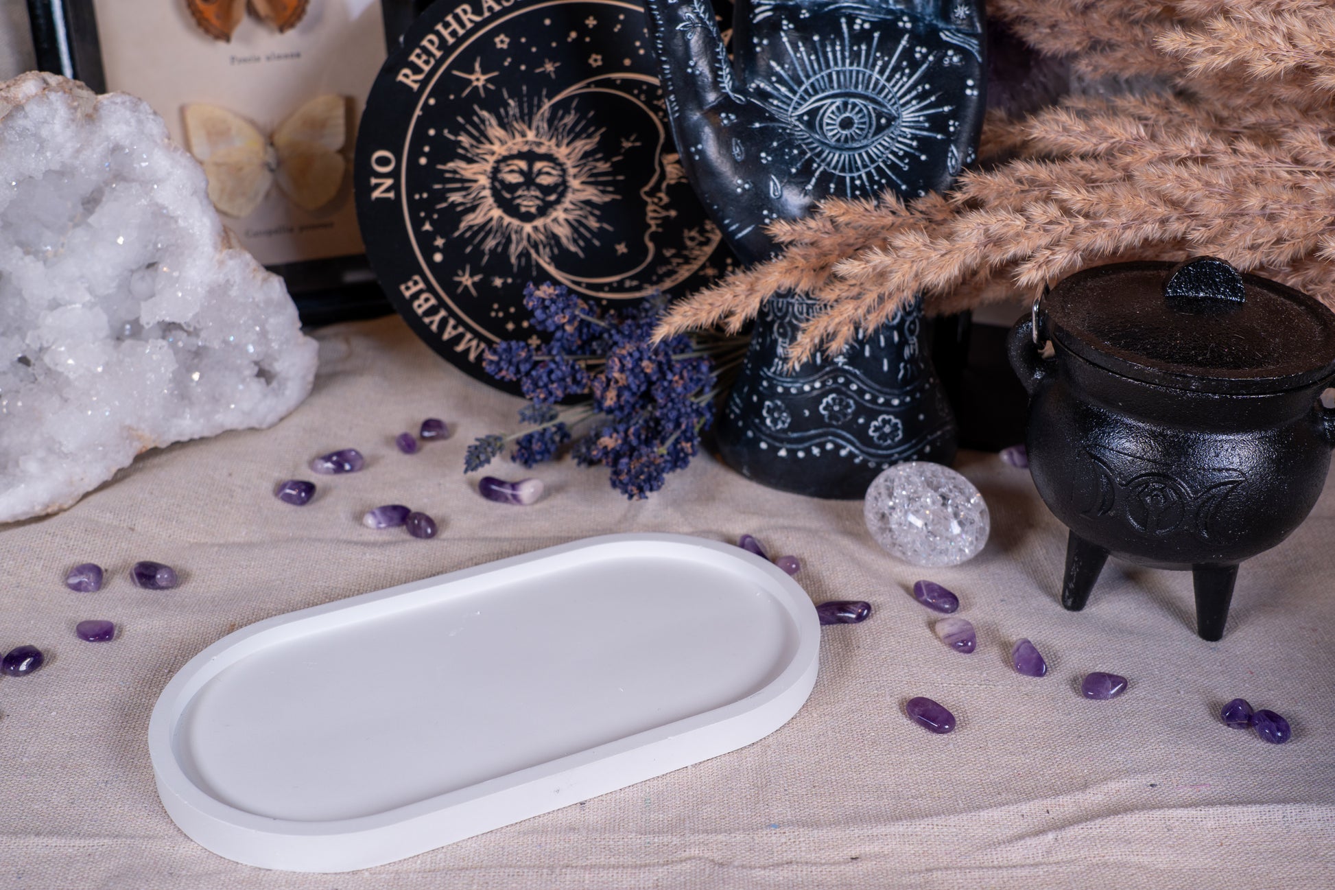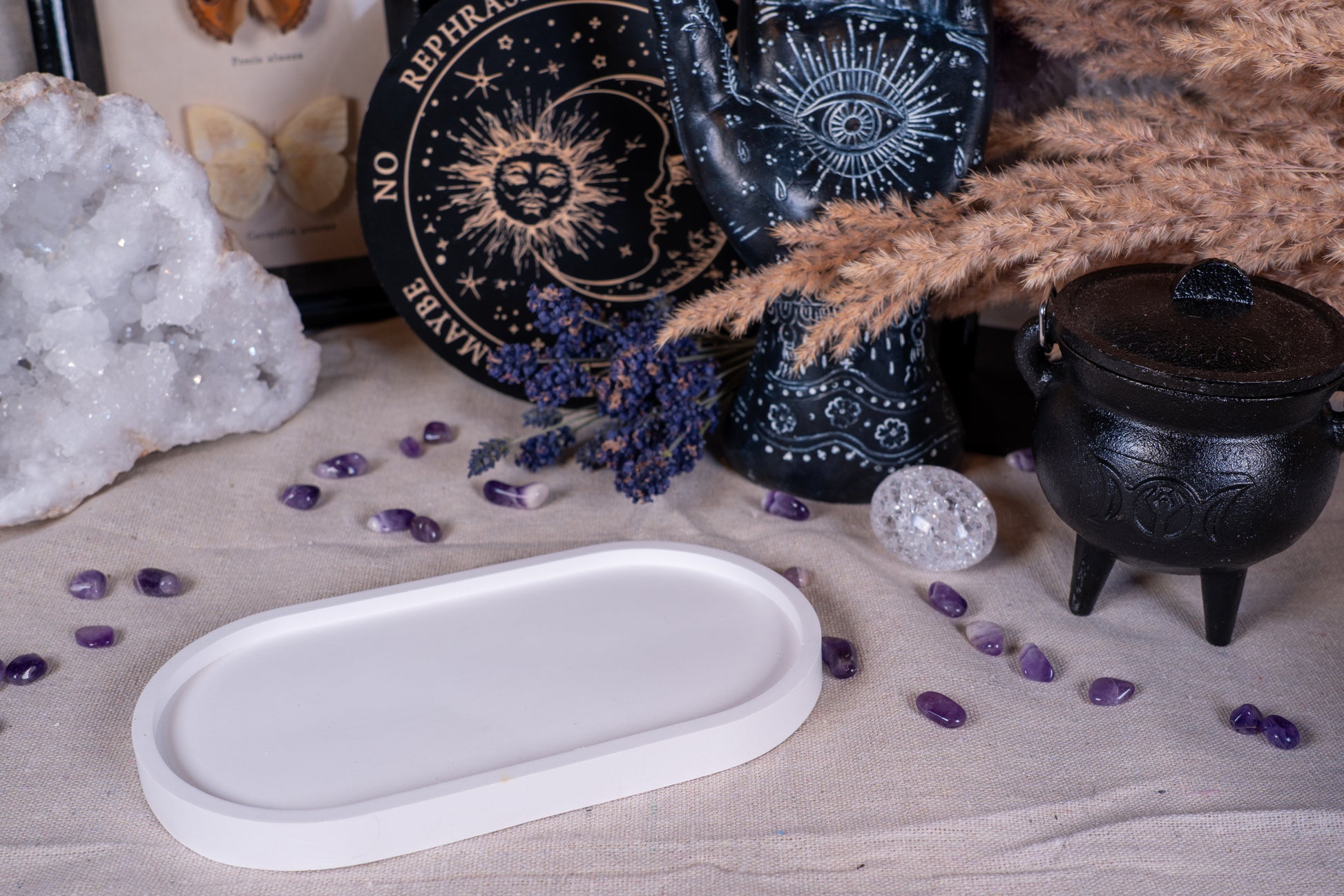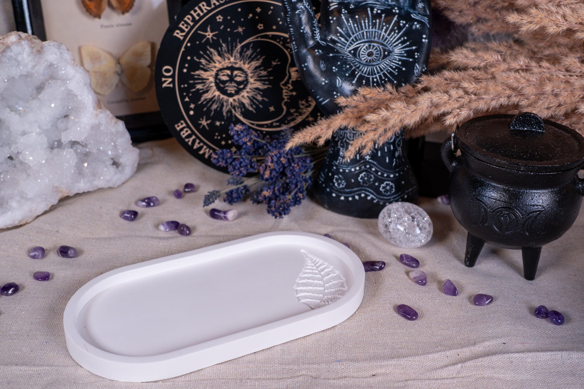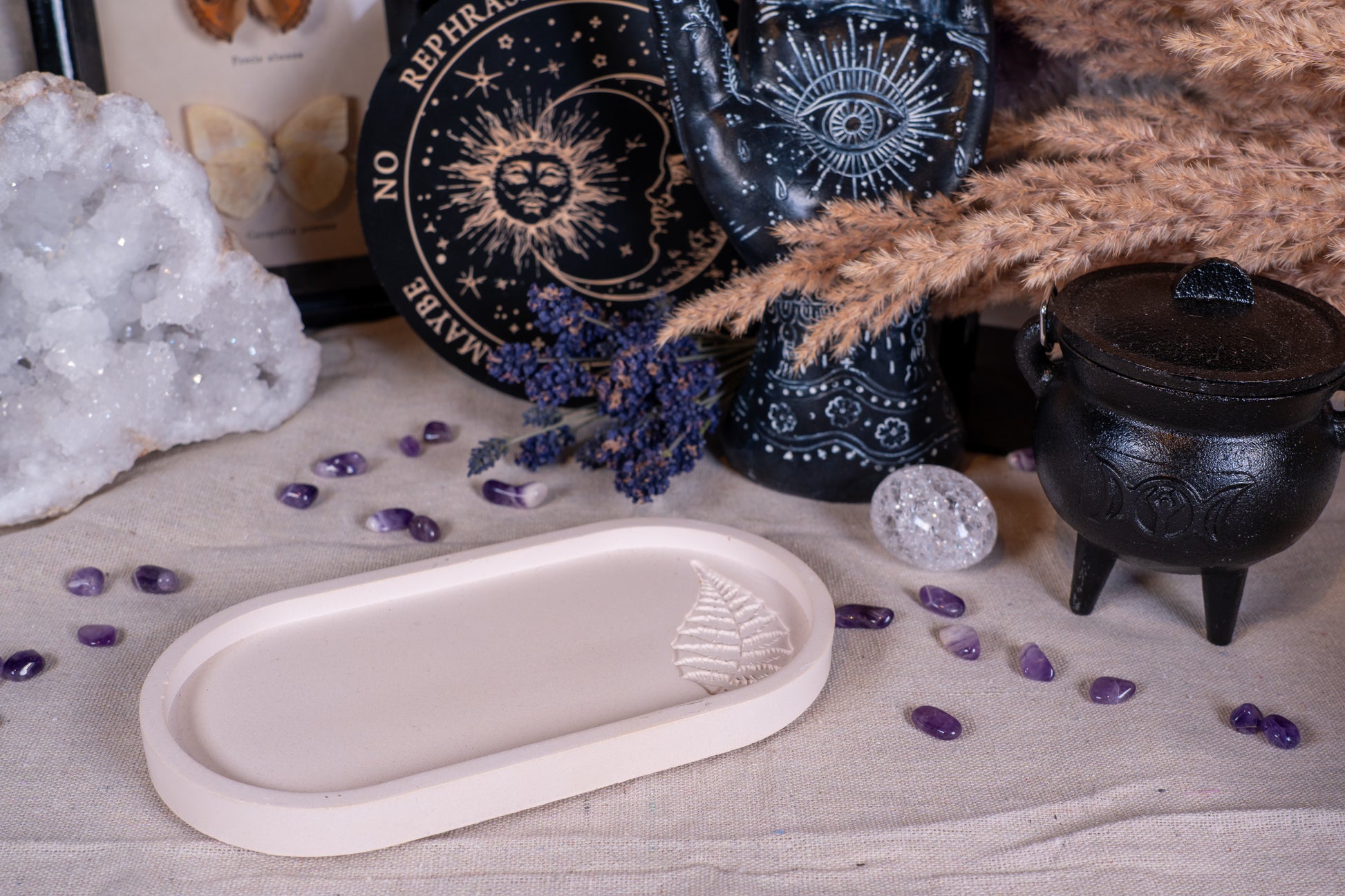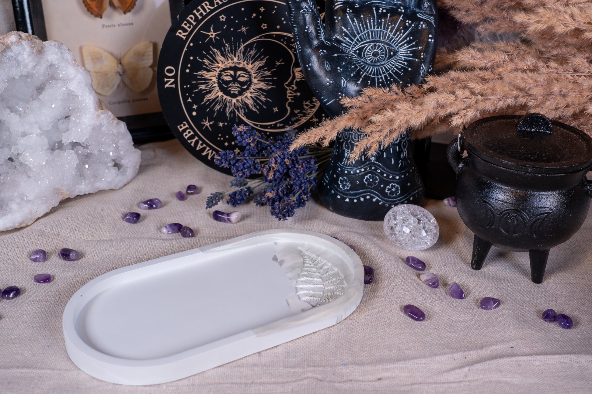 Mit ihrer organischen Form und dem eingeprägten Farnmotiv strahlt diese Schale eine natürliche Leichtigkeit und Verbundenheit zur Erde aus. Die zarte Prägung erinnert an Waldboden, Wachstum und zyklisches Leben – ideal für alle, die mit Pflanzen, Naturkräften und grüner Magie arbeiten. Sie eignet sich wunderbar als Schmuck- oder Ritualschale und bringt eine sanfte Erdung in deinen Raum.