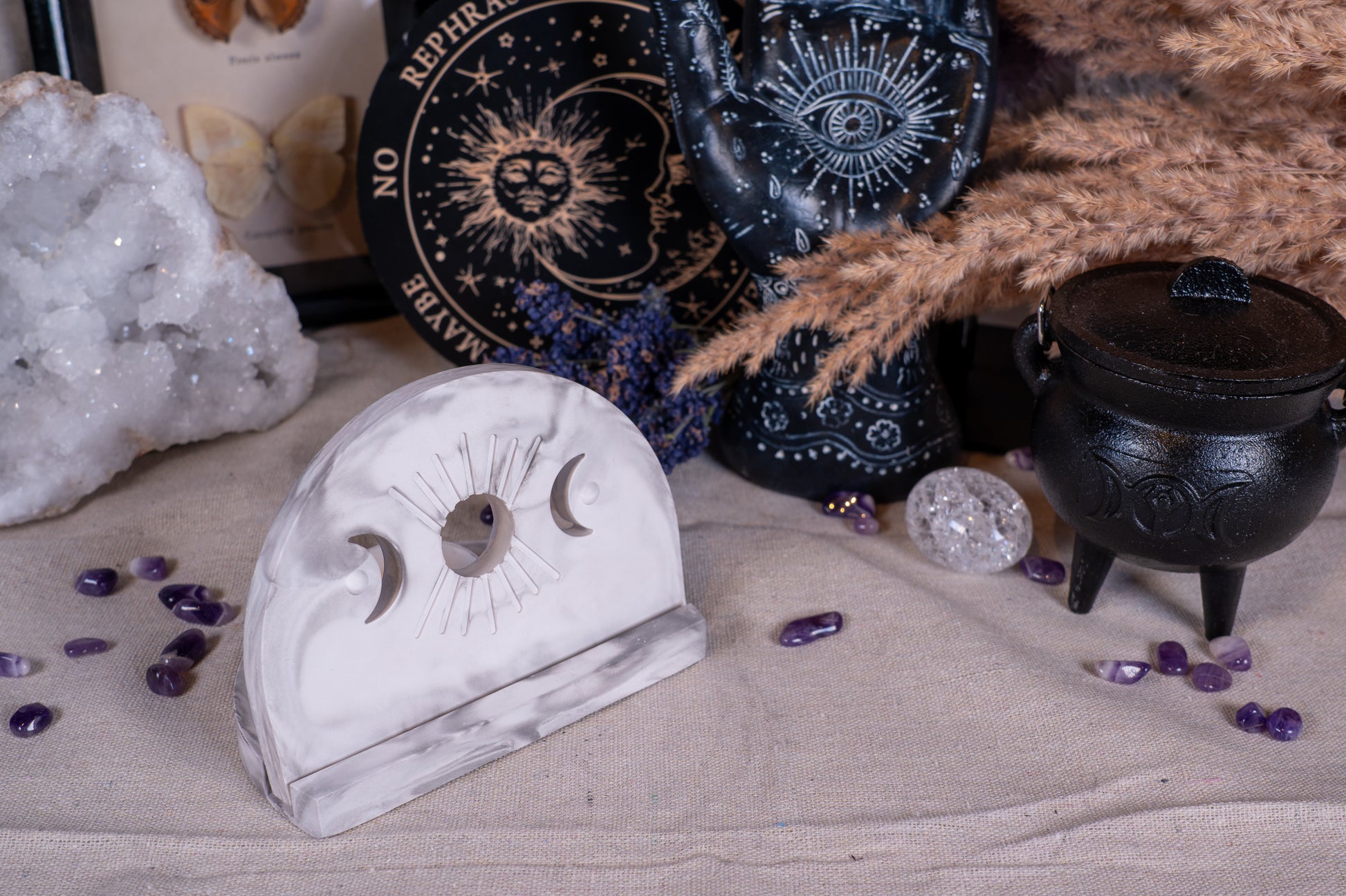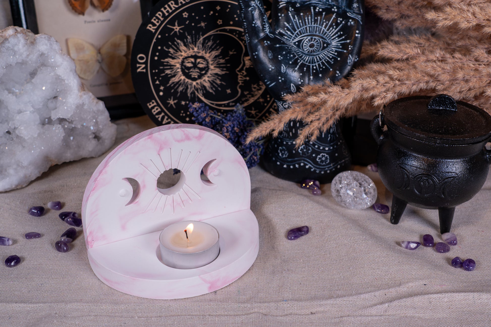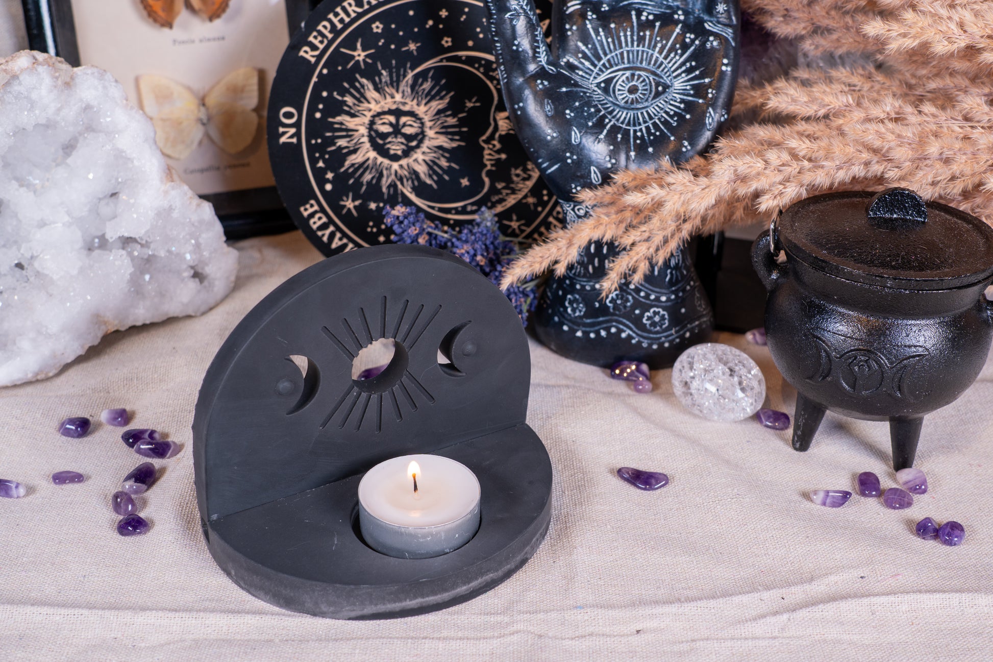 Besonders schön: Du kannst den oberen Teil wenden – je nachdem, ob du das Symbol im Hintergrund deines Rituallichts wirken lassen möchtest oder es in den Vordergrund deiner Zeremonie rücken soll. Ein vielseitiges Stück für alle, die bewusst mit Licht, Intention und Balance arbeiten.