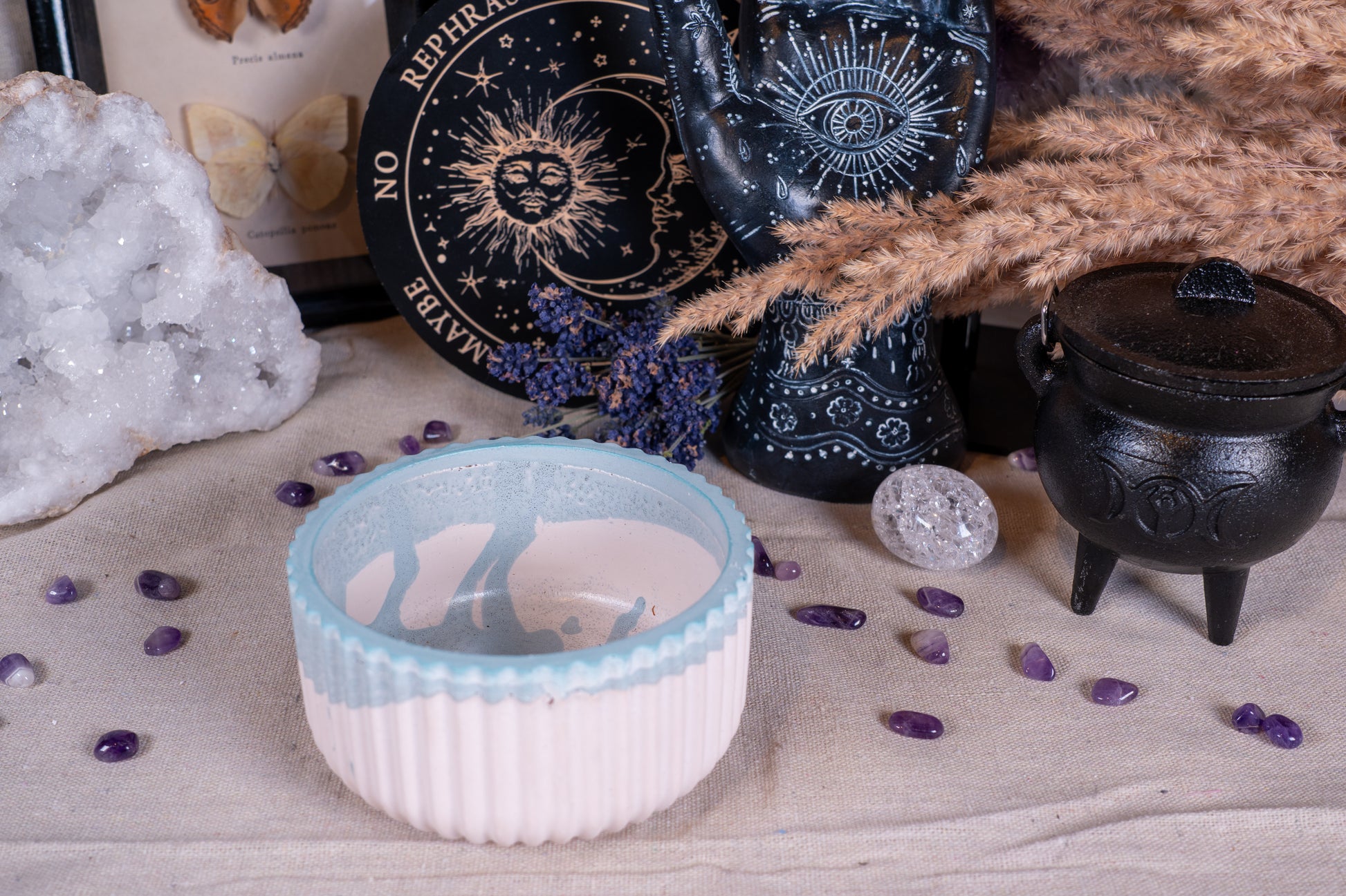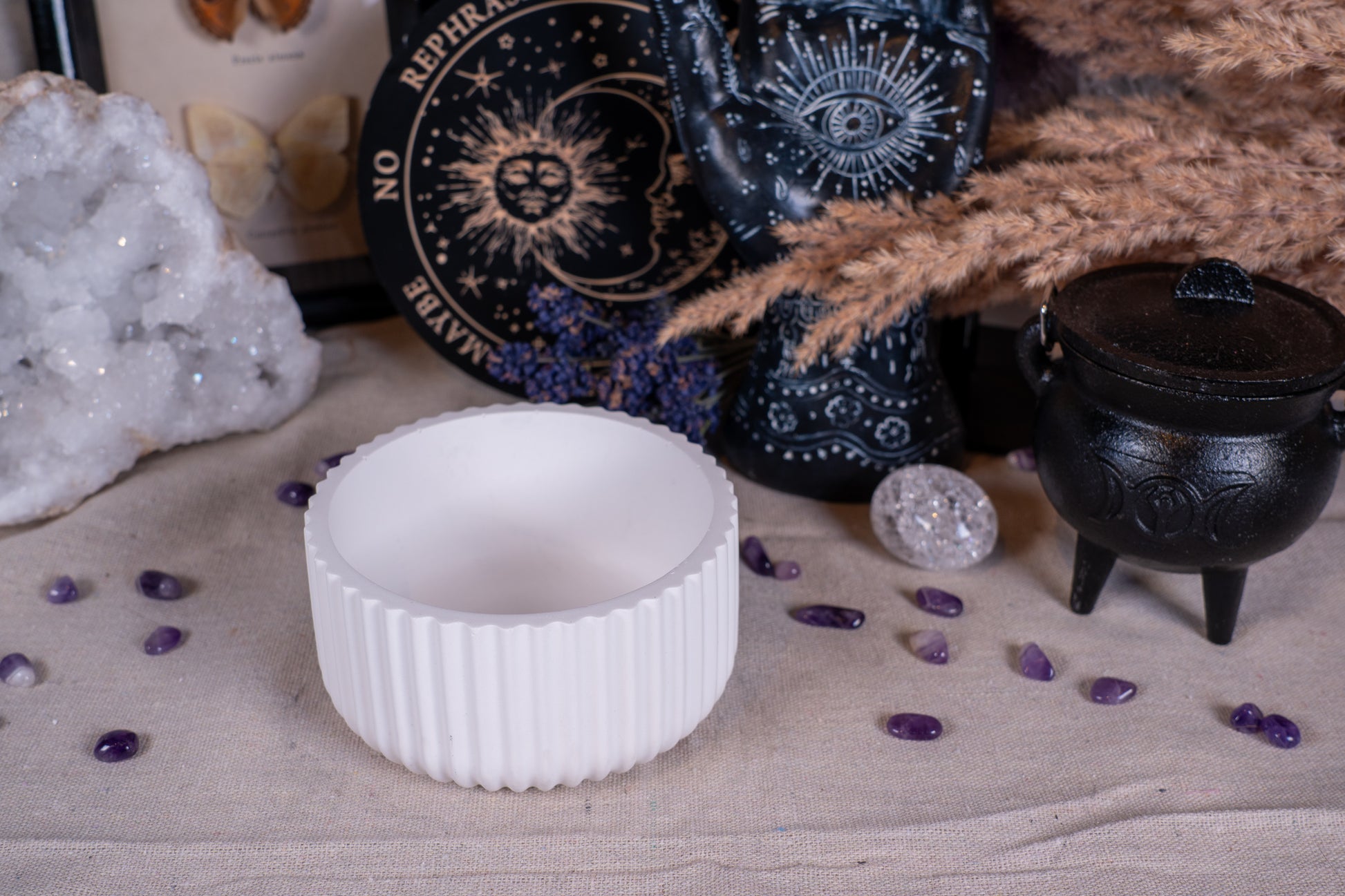 Diese schlichte, geriffelte Schale überzeugt durch ihre ruhige Form und zeitlose Eleganz. Die sanfte Rillenstruktur verleiht ihr Tiefe und macht sie zu einem vielseitigen Begleiter – ob auf dem Altar, als Kristallschale oder für kleine rituelle Gaben. Durch ihr minimalistisches Design fügt sie sich harmonisch in jede spirituelle Umgebung ein und schenkt deinem Platz eine stille Klarheit.